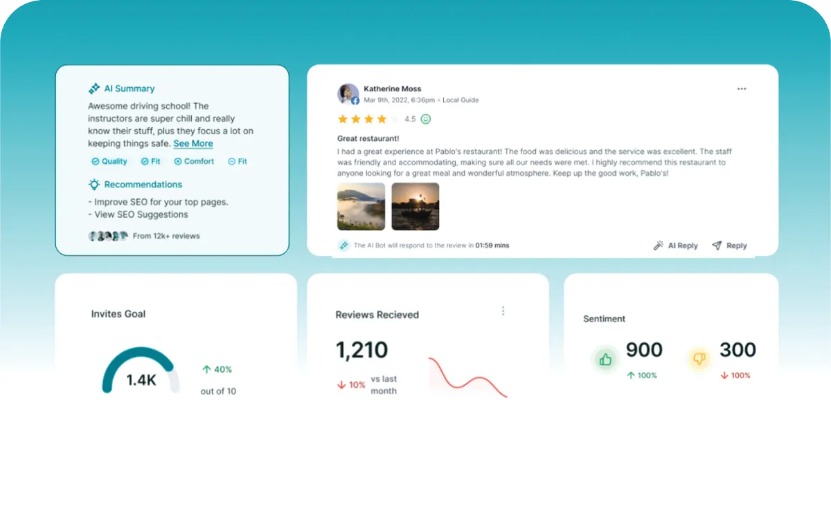 With Reviews AI, you can automatically respond to reviews on platforms like Google and Facebook, boosting your reputation while saving time. Choose between Suggestive Mode for personalized responses or Auto-Pilot for full automation.