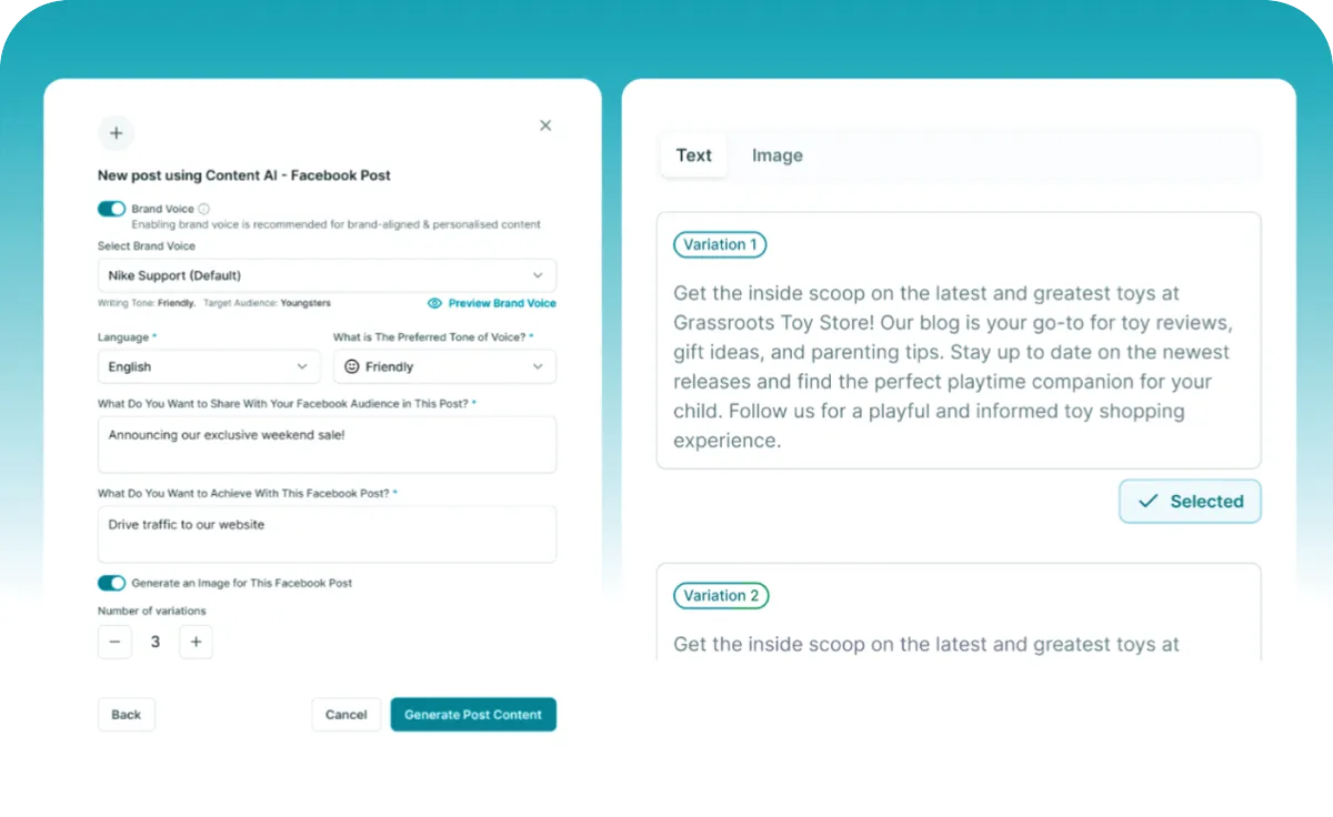 Content AI helps you create high-quality content quickly. Whether you need social posts, emails, or blog sections, it can generate text (and images!) in seconds, saving you hours of work.